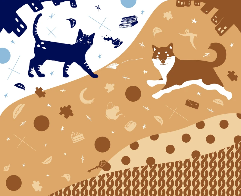 《紅茶花伝》X 詹朴APUJAN的聯名包裝,以奇幻手繪元素打造充滿生活感的日常異想,除了有著打字機、茶杯、茶壺、墨水、書頁、拼圖等圖案,還讓小貓布魯和小狗茶茶成為療癒嚮導,可愛破表。