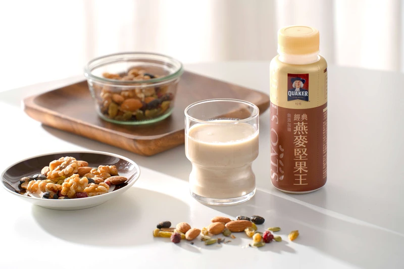 極佳的口感是給人的第一感受,因為添加了5種不同的堅果成分,在原本QQ有嚼勁的口感中,多了堅果研磨後的滑潤細膩感,除了香濃好喝還富有層次的變化,每一口不僅感到滿足也是種驚喜。除了燕麥與堅果成份外,也添加了多種超級食物,像是擁有高營養價值的穀物及豆類等,可以補足每天所需的營養成分,也很建議在運動前飲用可先補充適當的能量與熱量。另外,堅果成份內也含有對健康有益的不飽和脂肪,根據衛生福利部每日飲食指南建議,每天攝取一份堅果種子類食物,有益身體健康。