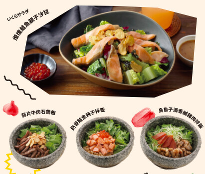 米食除了越光米外,也可以加價換購可換購蒜片牛肉石鍋飯、奶香鮭魚親子拌飯、烏魚子酒香鹹豬肉拌飯。飯後甜點可以選擇奶香萬丹紅豆湯、黑糖鮮奶酪品嚐,或是加價選擇靜岡抹茶生奶酪、草莓優格生奶酪,替一餐做最完美的ending!