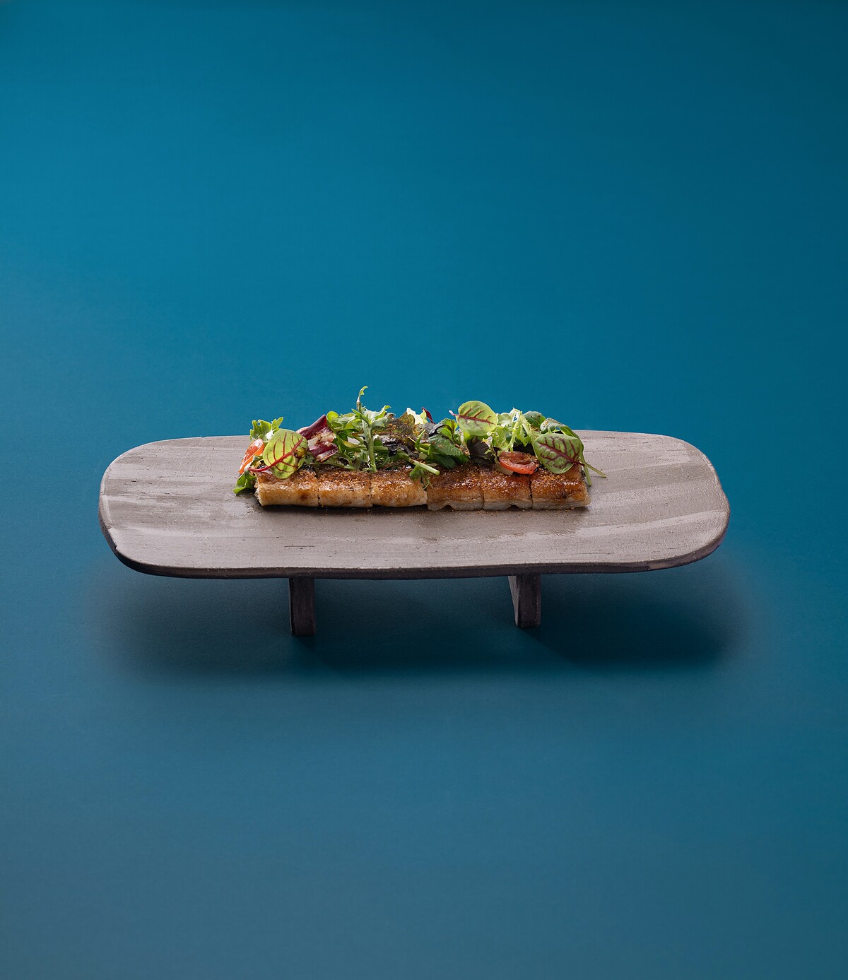 除了壽司必吃,《大車輪日料岩酒所》更是台灣第一間推出「岩石湯泡飯」料理的餐廳,將傳統形式的日式茶泡飯與岩石鍋結合後再加以創意改良,其中「岩燒鱈場蟹石鍋泡飯」為招牌餐點,主廚將甲殼類海鮮、蔬菜和奶油先熬煮6小時,將其燉煮出的紅蝦湯頭倒進岩石鍋內,搭配鱈場蟹,呈現豐富層次的美味湯頭。