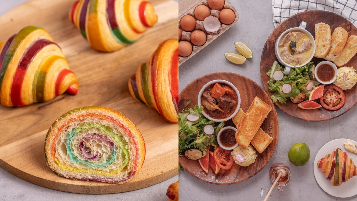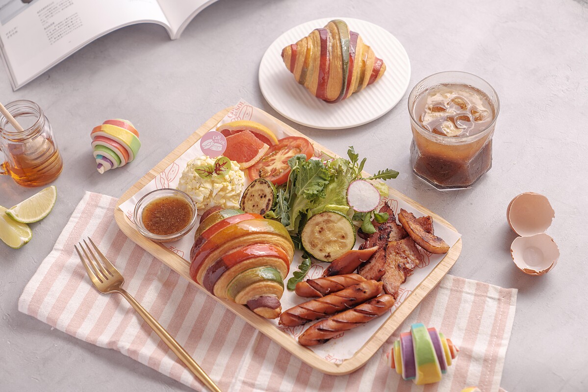 早午餐除了肉品可以選則外,也可以從可頌、米飯、巧巴達、鮮奶厚吐司四選一!推薦大家可以試試全新推出的彩虹可頌,主廚特選魯邦種天然酵母16折製作出來的可頌,外皮香酥,香氣十足,搭配柔軟濕潤的口感,真的太療癒啦!