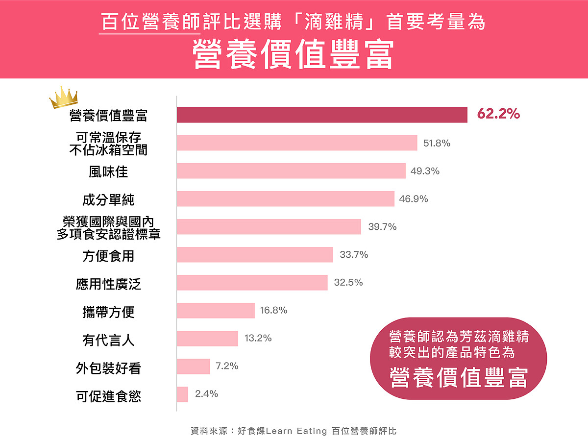 調查顯示營養師選購滴雞精最重視總支鏈胺基酸含量,芳茲日月養生滴雞精含量589mg/100ml