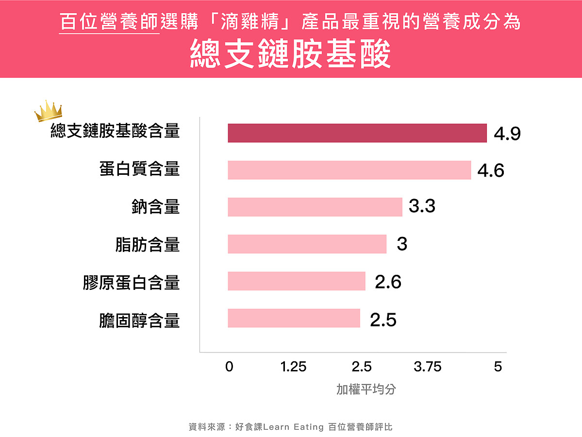 調查顯示營養師選購滴雞精最重視總支鏈胺基酸含量,芳茲日月養生滴雞精含量589mg/100ml