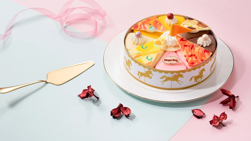高人氣的冰淇淋蛋糕也絕不缺席,全新「樂•動聽」創意十足,運用Twist馬卡龍打造耳機,搭配仿黑膠唱片的造型巧思,呼應代言人周湯豪的音樂才子身分,內層以巧克力x草莓巧脆搭配夏威夷果仁冰淇淋,在舌尖上譜出一席美味樂章!「木馬綺冰」繽紛絢爛的旋轉木馬頂棚,彷彿回到童年的遊樂時光,清爽香甜的水果風味冰淇淋,甜而不膩,盡情享受美味,無須保留!Häagen-Dazs傾心呈現多變、夢幻的冰淇淋派對,隨時隨地,只要跟著Häagen-Dazs與周湯豪一起「LOVE THE TWIST」準沒錯!