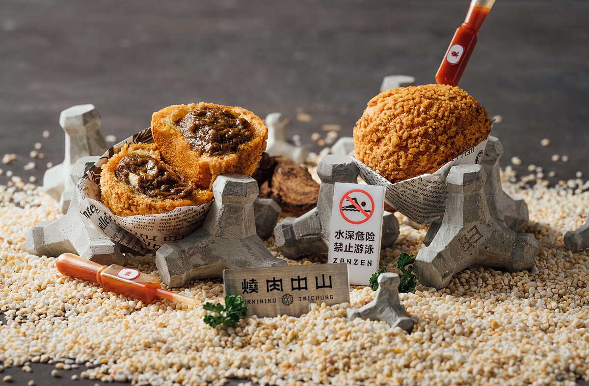 此外,在泡芙上插入一管「台中人口味的辣椒醬」,還原了台中人吃水煎包時自行注入辣醬的習慣,運用巧思在餐點中加入了台中在地人熟悉的飲食習慣,擺盤上刻有中山字樣迷你「消波塊」裝飾讓餐點更增添趣味感!