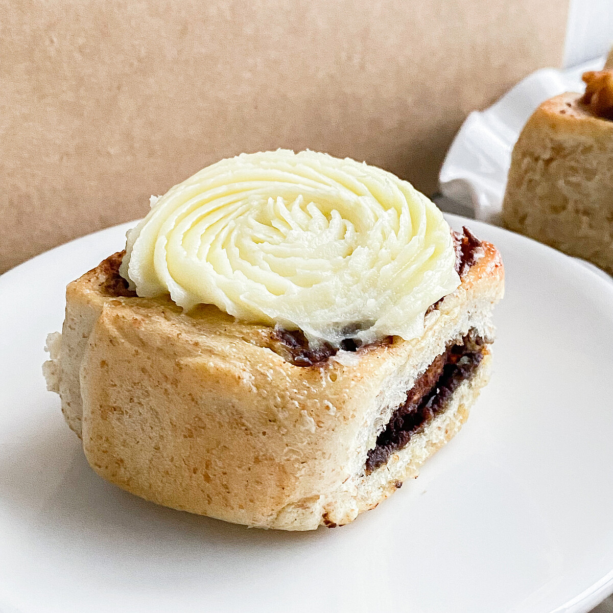 在肉桂捲上放上澳洲菲力奶油乳酪,一口咬下濕潤療癒的口感讓人一吃就愛上!