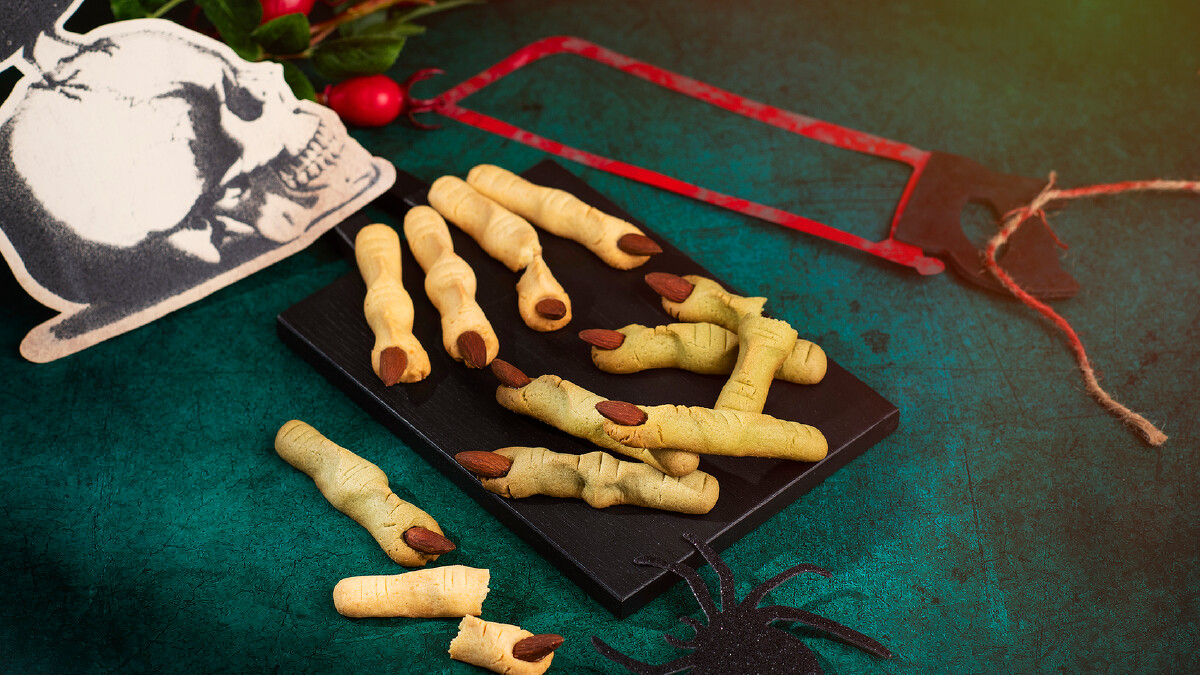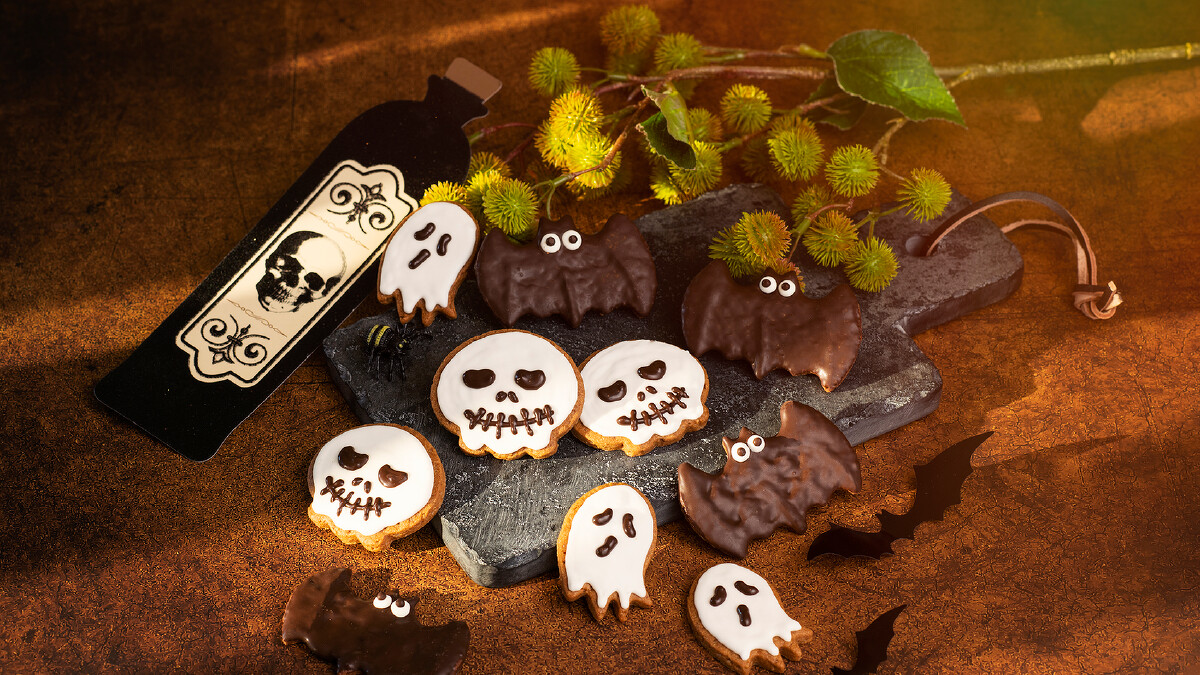 宛若巫婆手指的奶油餅乾和抹茶餅乾令人毛骨悚然,維妙維肖的指甲造型是以杏仁顆粒裝飾,驚悚斷指充滿濃郁奶油香氣,酥脆口感越吃越順口,絕對讓人「食指大動」!另外還有幽靈鬼怪們化身成超可愛「萬聖脆脆」,肉桂餅乾以超萌蝙蝠寶寶、骷髏頭與白色小幽靈為造型,刷上黑白牛奶巧克力,搞怪又可愛,是充滿節慶感的萬聖節主題餅乾!