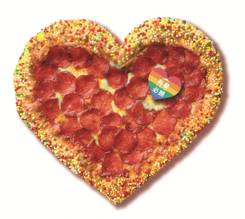 來到每年的10月彩虹驕傲月,必勝客首度推出愛心造型「有愛必勝比薩」,期望為每一份平等的愛加油打氣。
