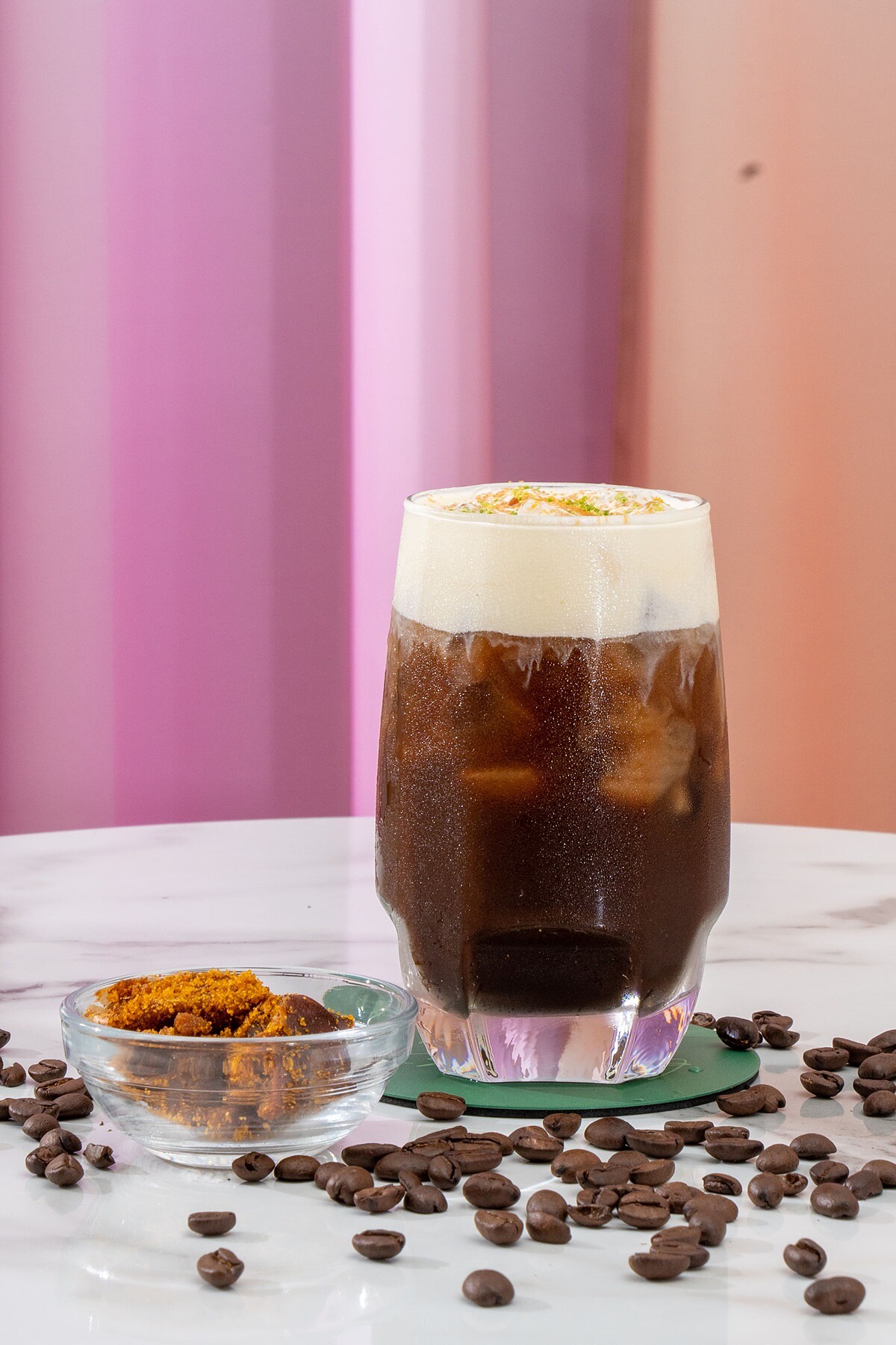 沒想到烏魚子跟咖啡居然能夠這麼搭!巧妙的將東、西文化完美融合,研磨帶有果香的深焙咖啡豆,再加入核桃及烏魚子點綴,讓烏魚子的鹹香與咖啡核果的苦甜達到完美的平衡。