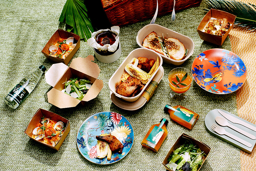 這場繽紛視覺饗宴,也能在Wedgwood首度跨界金普頓大安酒店12樓的The Tavernist推出的「Wonderbox野餐籃」中看得到!野餐籃中會隨機搭配兩只漫遊美境骨瓷盤,無論是在戶外或居家用餐,都能因醒目圖騰,重溫置身綠意秘境的愉悅感受。