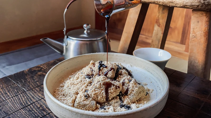 使用日本的蕨粉搭配台灣的黃豆粉、三溫糖製作而成。