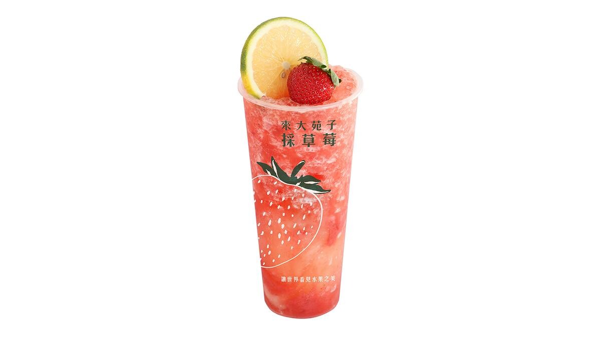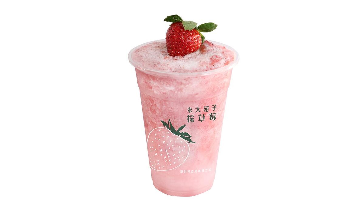 大苑子為了讓大家吃得新鮮安心,主打「今日採、今日吃」,直接在大湖產地蓋一間行動農檢室,當日清晨就採摘、檢驗,並將農檢合格的高規格新鮮草莓直送門市。莓好花漾結合草莓與頂級台灣青茶,再加入些許愛玉,讓飲品口感更加豐富、清爽!