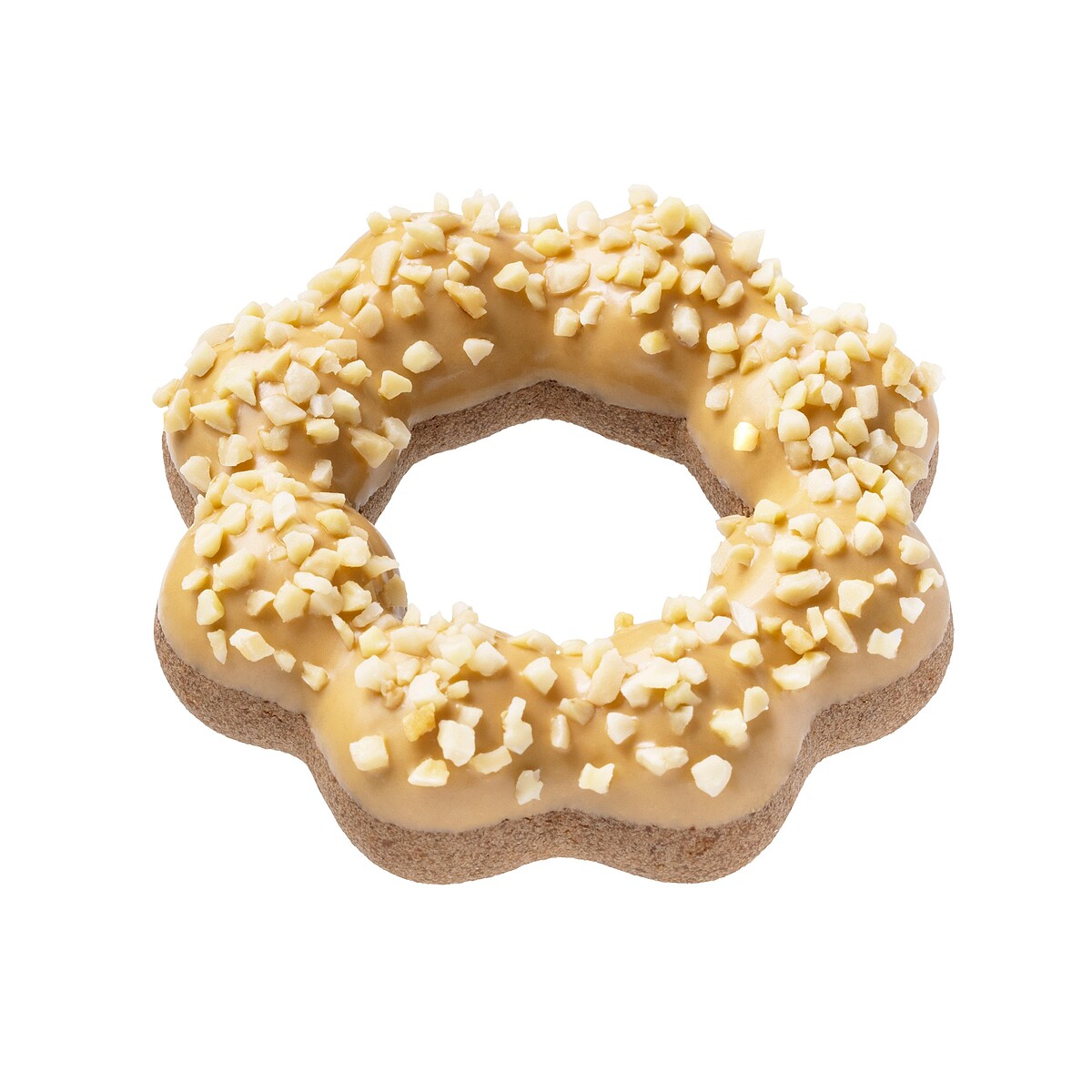 巧克力波堤沾裹大人味鹽焦糖風味巧克力,再撒上熟烤杏仁粒。巧克力風味中帶有堅果香氣,越嚼越香。