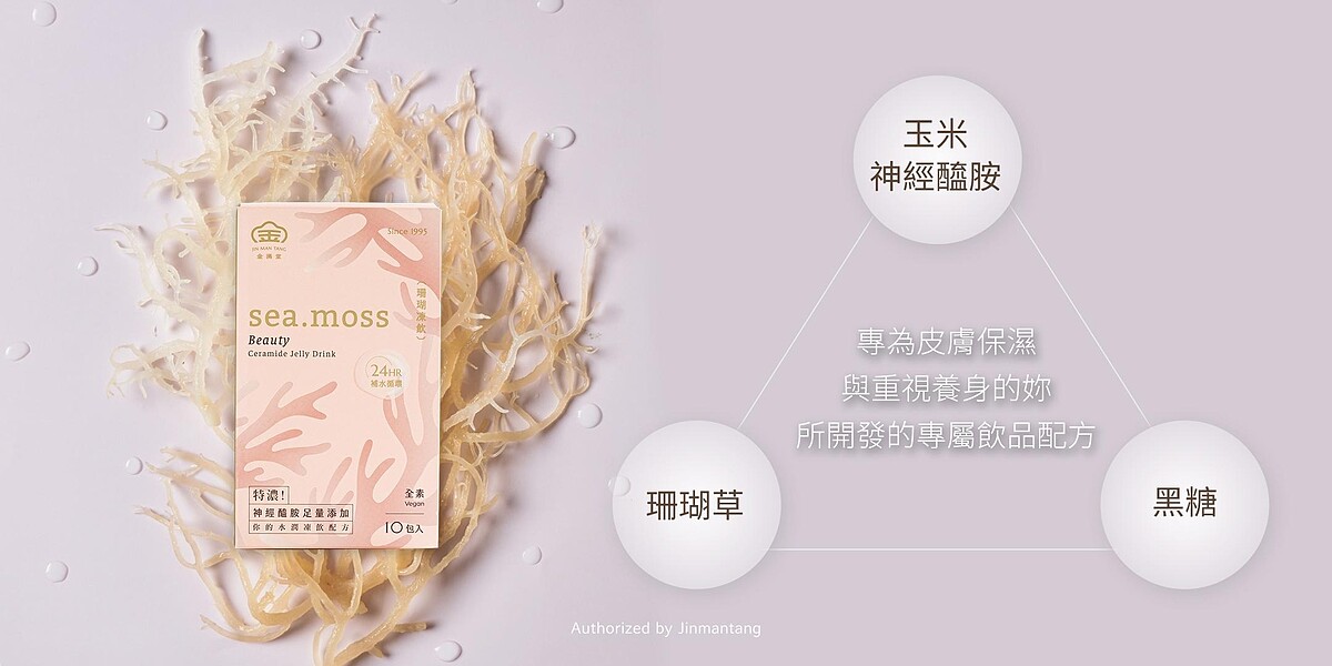 還有珊瑚凍飲系列也超推~女生永遠都有個甜點胃,但唯一擔心的就是熱量,金滿堂特別為愛美又怕胖的姊妹推出珊瑚凍飲,甜甜ㄉㄨㄞㄉㄨㄞ口感,就好像果凍一樣滿足我們的甜點胃~在有小資族燕窩之稱的「海燕窩」中添加足量的玉米神經醯胺,神經醯胺是肌膚保濕潤澤最重要的成分,不只能幫我們體內補水也能幫我們抓緊肌膚的水份,形成24小時水循環,越喝皮膚越水潤Q彈! 根本是用喝的保濕聖品!熱熱喝像黑木耳露口感,加冰塊變成像燕窩口感,冷卻後則變成果凍!多種飲法超滿足!珊瑚凍飲的成分都是全素可食用的,全素喝的保養品,讓素食者多一個水潤透亮新選擇~