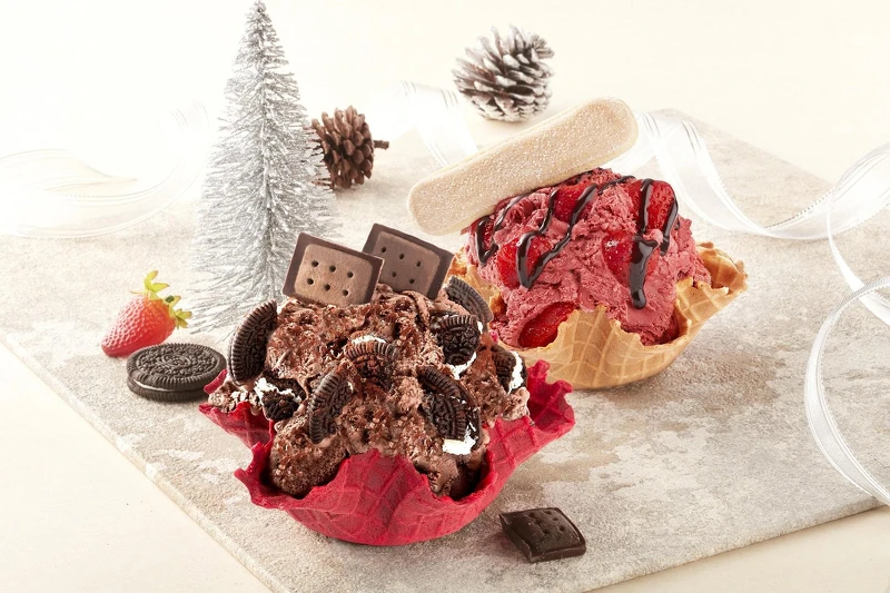 除了好吃的4倍爆濃巧克力冰淇淋、耶誕紅絲絨冰淇淋外,以推出充滿節慶感的限量「耶誕紅脆餅」、「耶誕紅甜筒雙球冰淇淋」,打造視覺與味覺的絕佳享受!