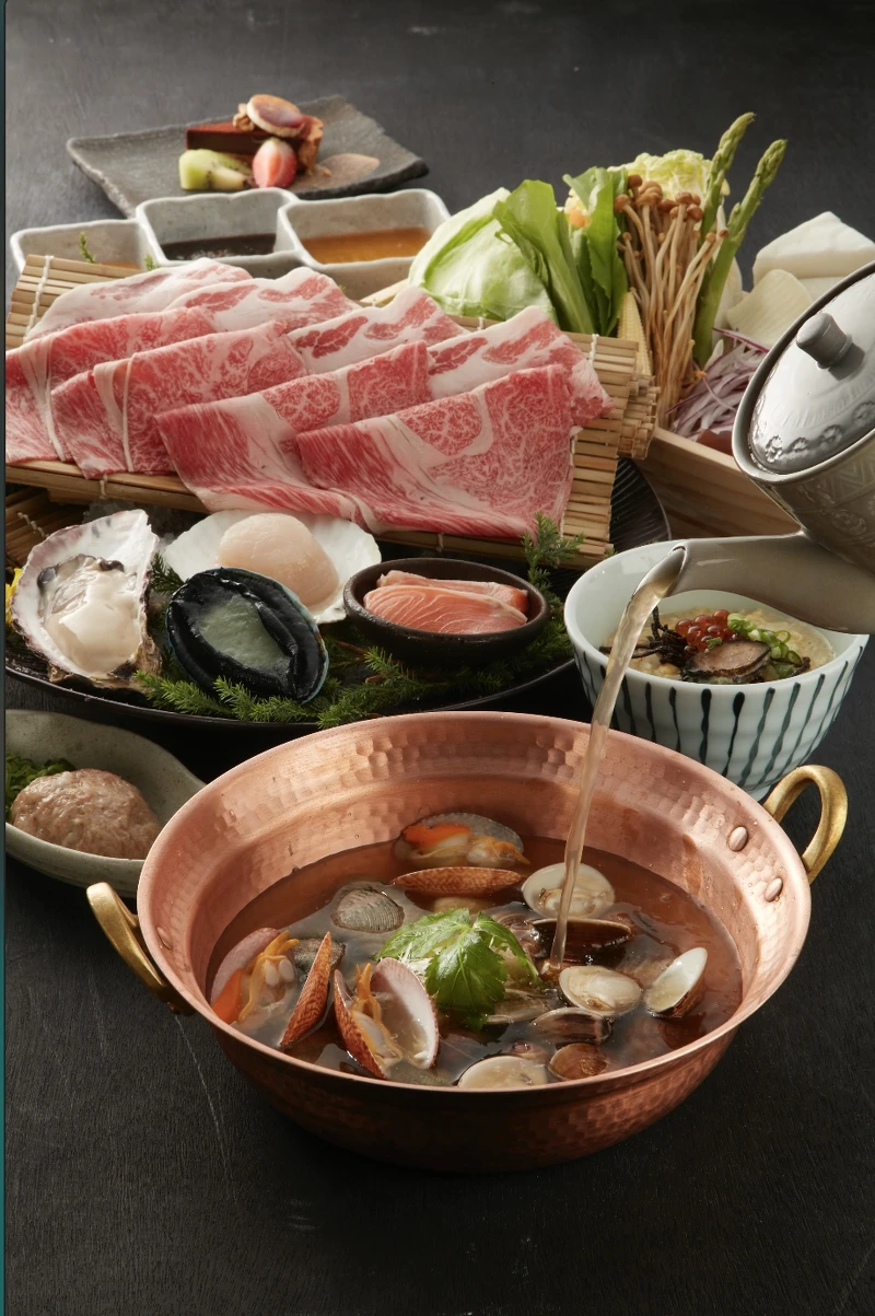 《黑毛屋本家》SOGO復興店也推出冬季限定鍋物「鮑魚貝貝鍋」,匯聚了7種貝類,以大黃蜆、文蛤,加入雞骨熬煮出貝貝高湯,喝起來香醇鮮美,不只搭配南非產活鮑魚、海瓜子、九孔、北海道產干貝、廣島牡蠣各式鮮美貝類,最後還有不能錯過的「鮑魚雜炊」,是最暖心滿足的完美結尾。
