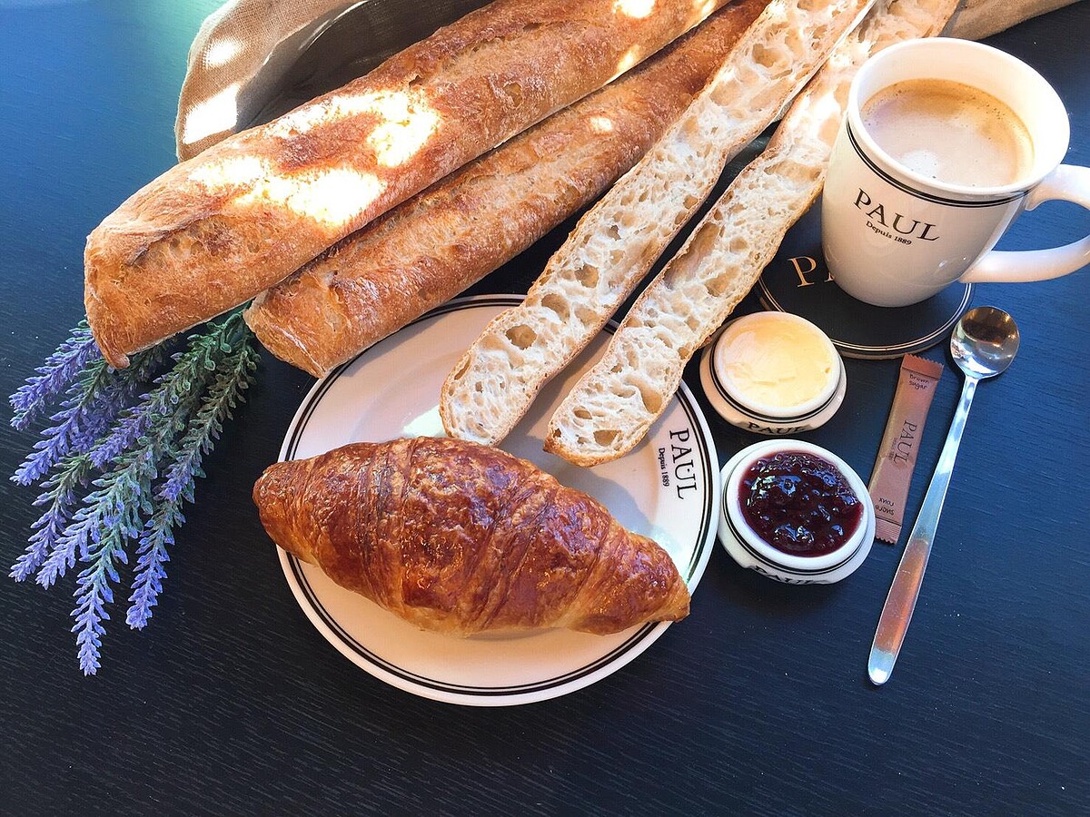 而PAUL主廚不藏私的吃法,是將保羅長笛切片,先抹上一層奶油,再塗上一層草莓果醬,鹹甜口感,每一口都超療癒!