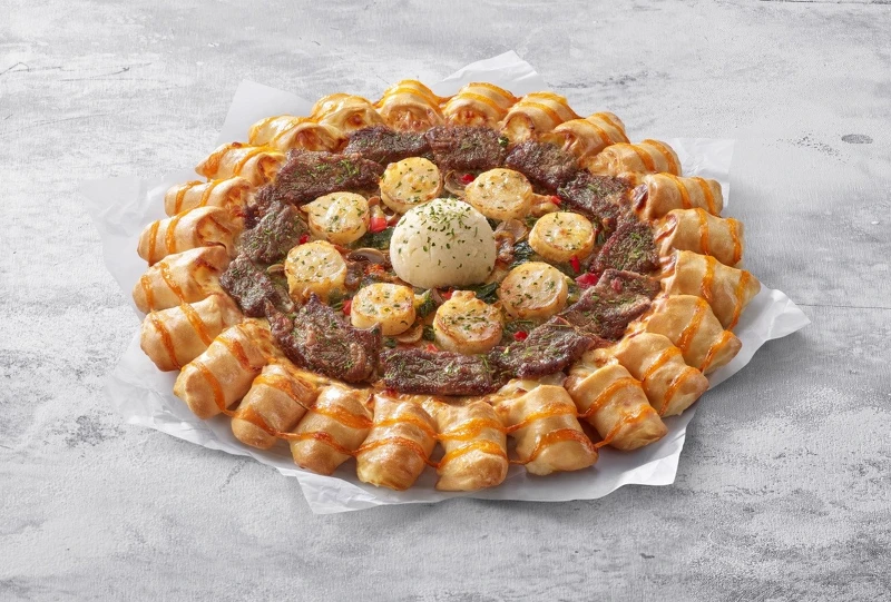 必勝客新口味太豪華!「威士忌牛排干貝比薩」鋪滿6盎司牛排、炙燒干貝超澎湃
