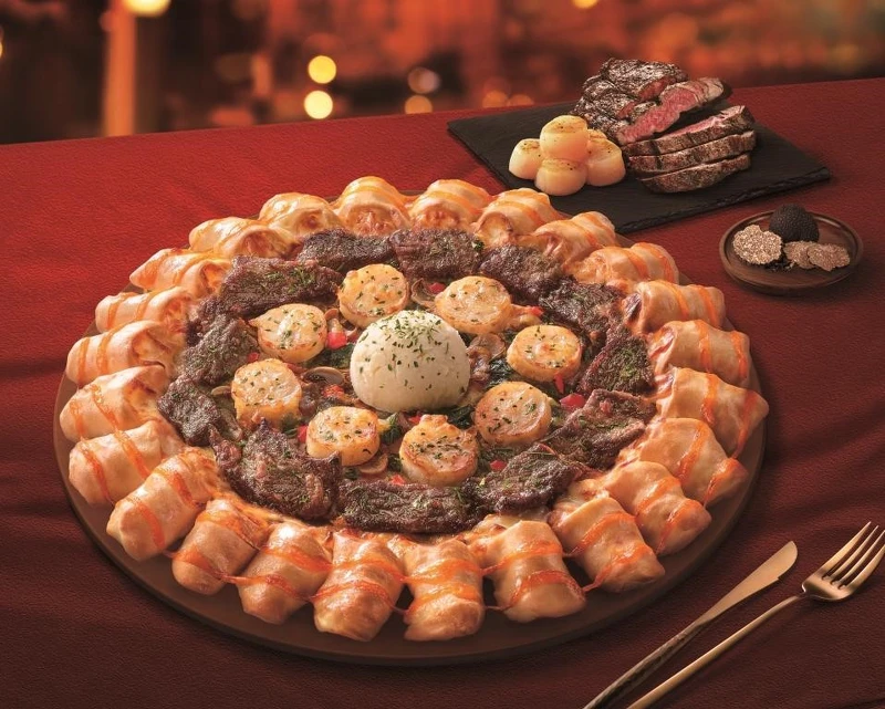 必勝客「威士忌牛排干貝比薩」即日起限量發售,大比薩定價850元。