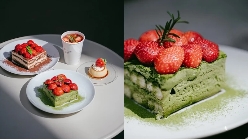 選用大湖香水草莓,《Wuli keopi》這次將店內招牌No.1甜點「提拉米蘇」升級,研發出「草莓抹茶提拉米蘇」,基底「抹茶提拉米蘇」將「日本森半京都宇治抹茶」與馬斯卡邦起士完美融合,不只能吃到濃郁的抹茶香氣,搭上飽滿多汁的草莓,是本季的夢幻下午茶。