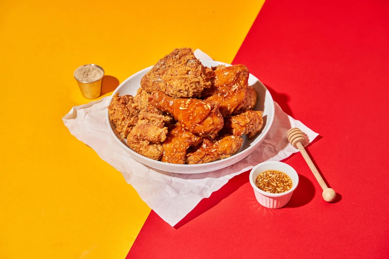 以蜂蜜、寡糖及多種蔬果調製而成的獨門醬汁,一口咬下甜而不膩的療癒風味,熱愛韓式炸雞的人絕對不能錯過!
