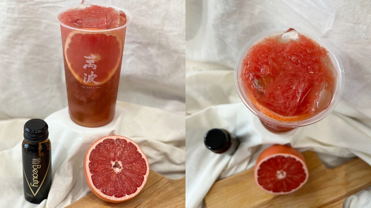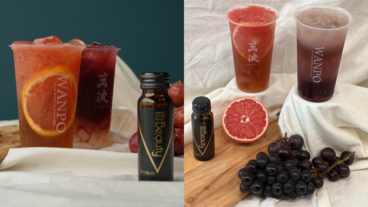 《萬波》X VitaBeauty限定新口味將於11/19於全台門市同步發售,外送平台由Uber Eats獨家販售,使用萬波LINE官方會員,於11/19-12/19透過LINE線上點餐訂購「古溜葡萄膠原冰茶」和「膨皮西柚膠原冰茶」,使用優惠券即可以0元加購Vitabeauty玫瑰石榴膠原蛋白飲乙瓶,數量有限,送完為止。