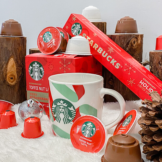 在這款節日限定膠囊組合中可以品嚐到這次主打的節日綜合咖啡以及派克市場咖啡、黃金烘焙咖啡等,每一口咖啡都是聖誕佳節的幸福滋味!此外,同樣也有附贈星巴克季節限定版馬克杯一個,星巴克迷們絕對不能錯過啦!