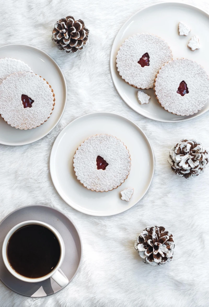 美式餅乾夾入自製蔓越莓果醬,撒上雪白細密糖粉,宛如紅寶石般的小巧聖誕樹造型,外酥內軟,酸甜不膩口,真的超可愛!