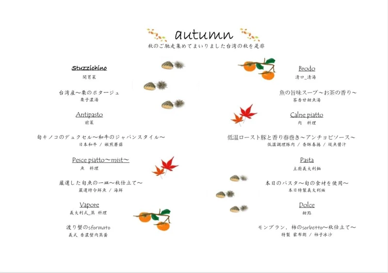 在2021秋季無菜單料理中使用了多種秋季食材,讓味蕾來一場精緻的秋季饗宴!