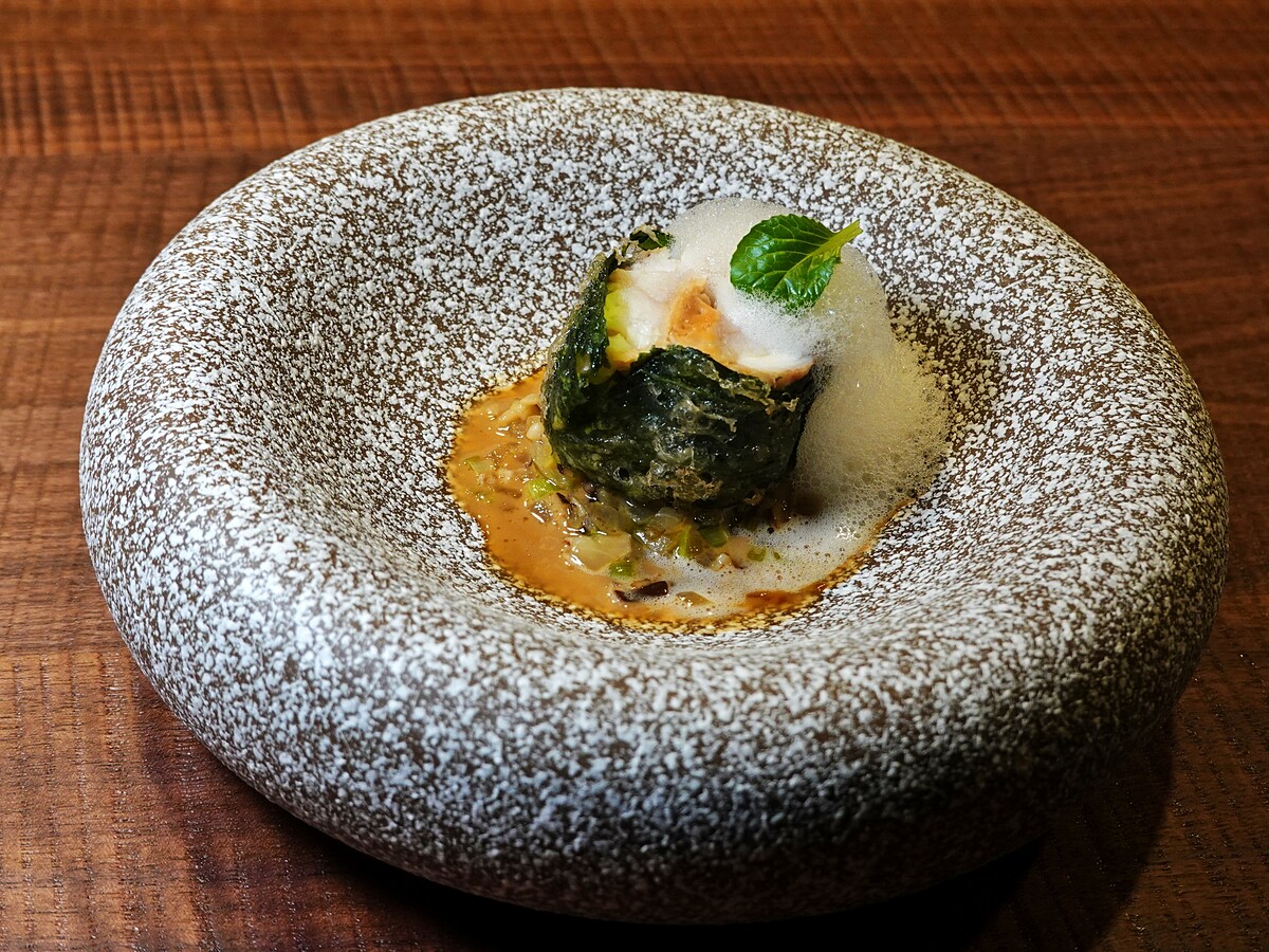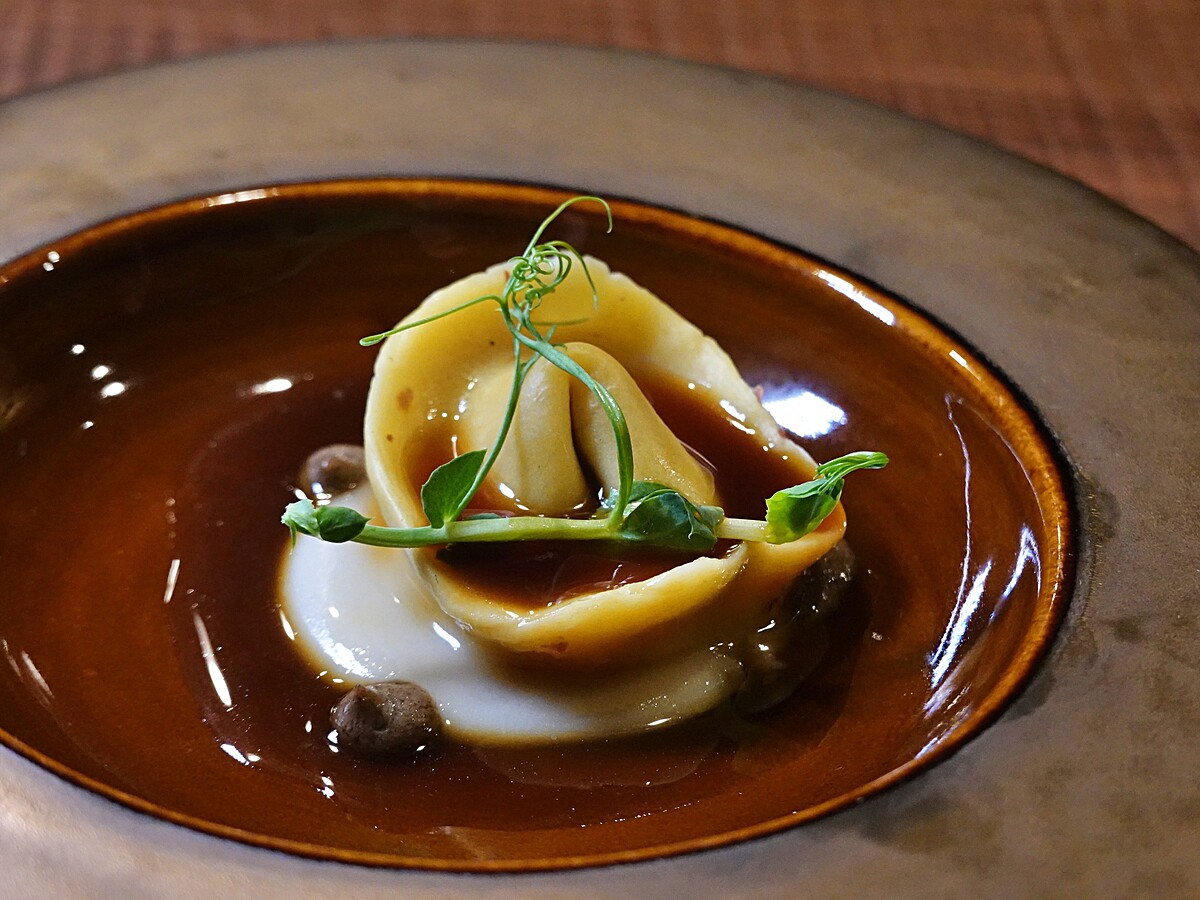 另一道則取用乳鴿腿肉作成餡料,再包上手工水餃皮,製成義式 Tortellini 餃子,佐上蕪菁、黑松露鮮味醬,有 al dente口感外的鮮美滋味,替味蕾交織出極致享受,令人回味無窮。