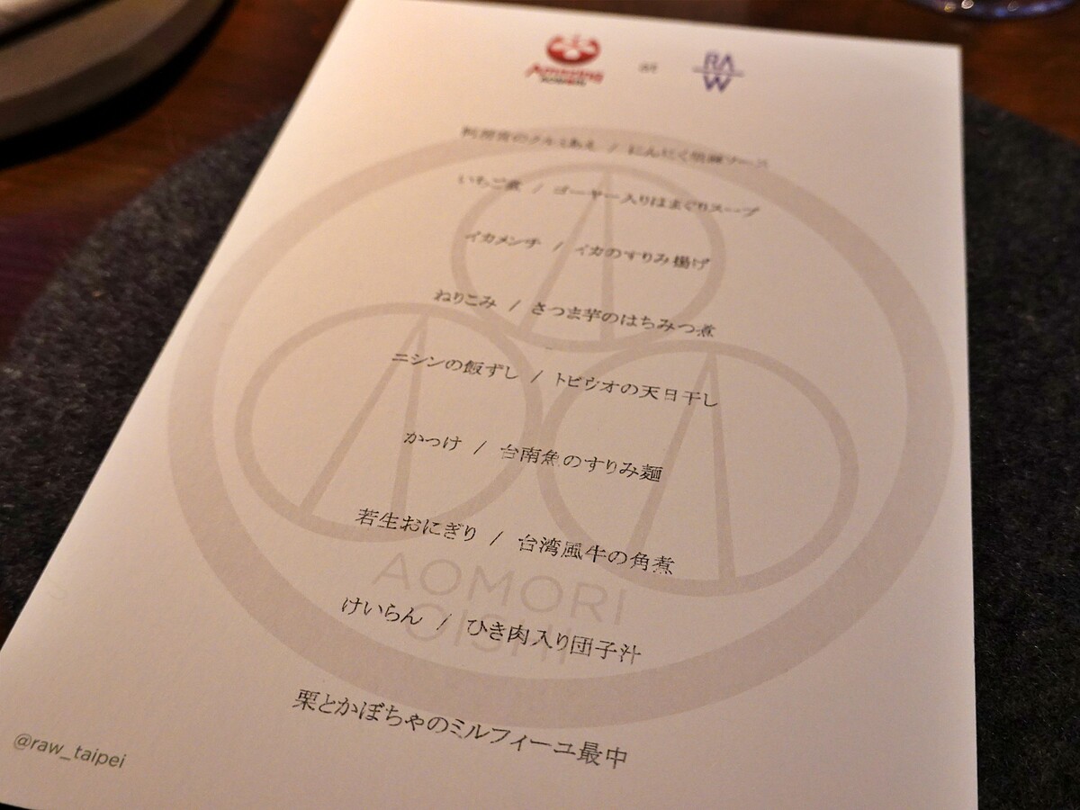 2021年 RAW七週年!青森週 Local to Local 菜單