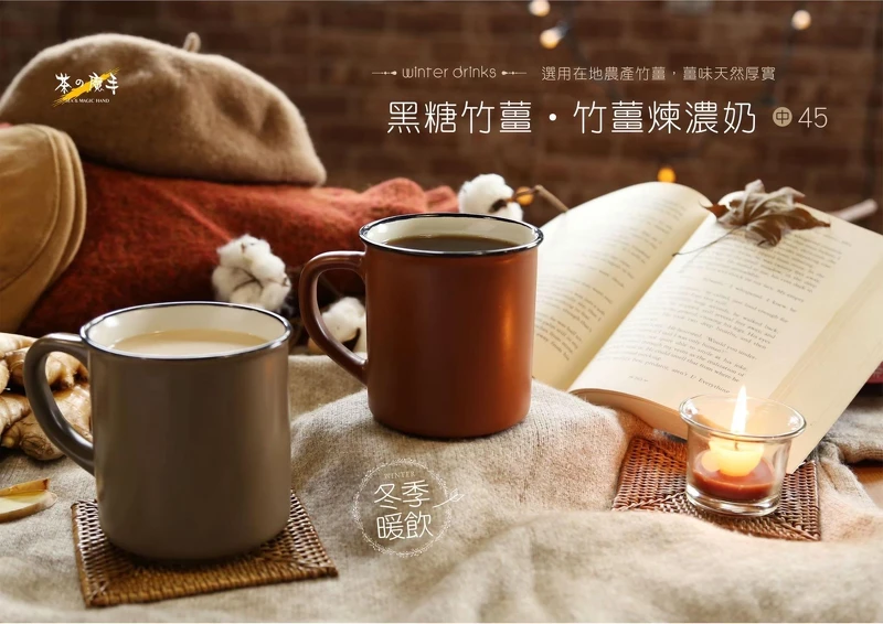 冬季限定熱飲,以手工精心熬煉的黑糖蜜,搭配台灣農產竹薑,輕甜帶點微辣口感,同時暖身又暖心,是冬季首選推薦的飲品!