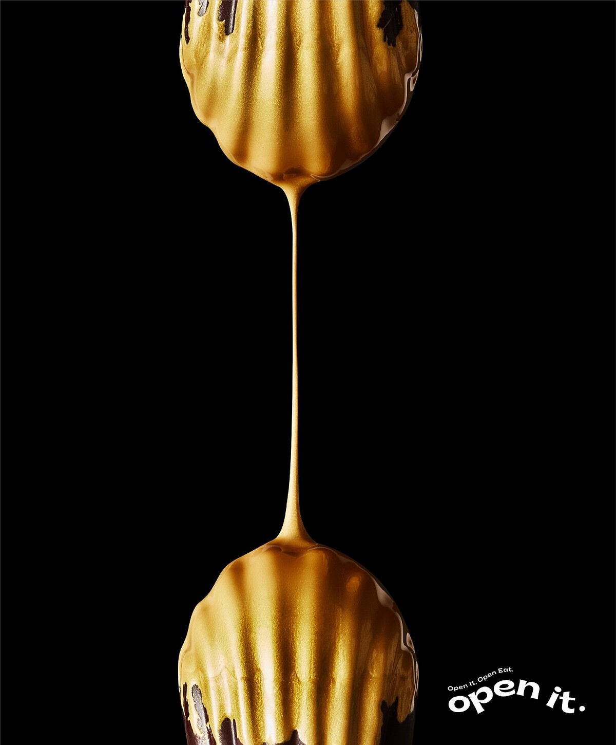 最外層以滿版的法國食用金粉貝殼表面帶出黑金奢華感,加入法國法芙娜阿拉瓜尼72%單一產地頂級巧克力,食用前再使用滴管注入日本崎威士忌。