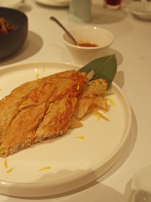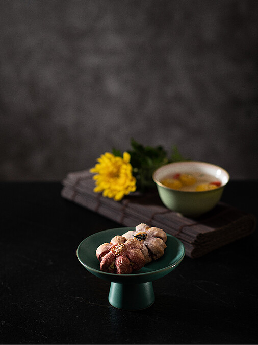 為宋代宮廷名點,外表似一朵綻放菊花,使用油酥、油皮層層堆疊烤製,口感鬆香綿糯,內餡則有香濃芋頭或綿密蓮蓉,細緻滑潤口感,適合飯後一口甜,是視覺、觸覺、味覺、嗅覺四重享受。