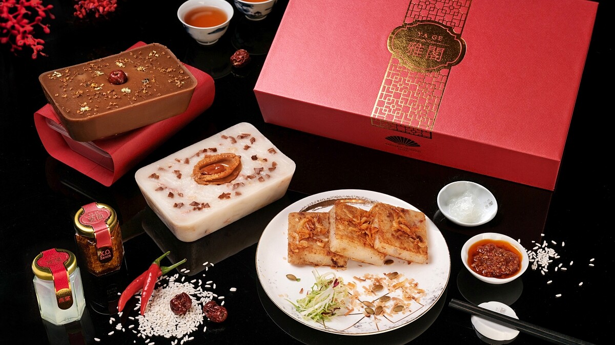 館內的米其林一星餐廳「雅閣」不只於2/1~2/8推出新春賀年套餐,也開放預訂「手工年糕佐燕窩及X.O.醬禮盒」。加入港式臘腸,南非鮑魚製成的風味蘿蔔糕,配上帶有清香的金箔桂花黑糖年糕、雅閣X.O.醬與冰糖燉燕窩,是一款集美味與奢華的上乘之選。