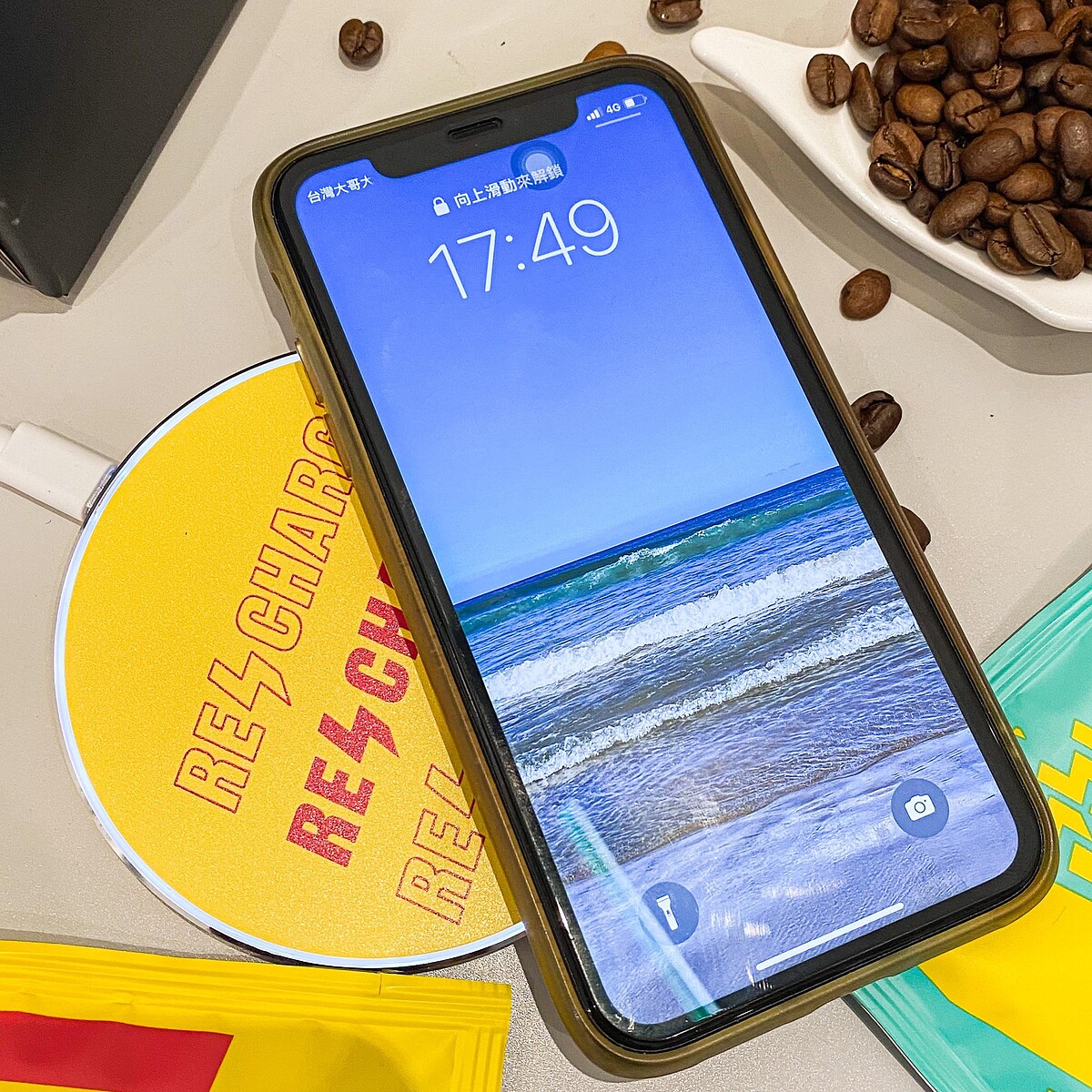辦公室必備小物!全黑燙金的手工外盒,搭配經典RECHARGE圖案,支援15W 快速充電,手機靠它充電,大家就靠閃電咖啡充電吧!