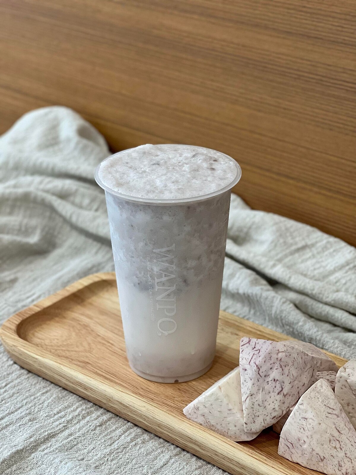 早先一推出就成為人氣飲品,《萬波》的「紫米芋芋椰奶」終於在2022年全新回歸,特別以南洋甜點摩摩喳喳為靈感,將檳榔心芋頭塊加入鮮奶混打,並加入紫米、小芋圓,以及波霸,爆滿配料一次入口,加上紫白色的唯美色調,絕對是本季夢幻商品。