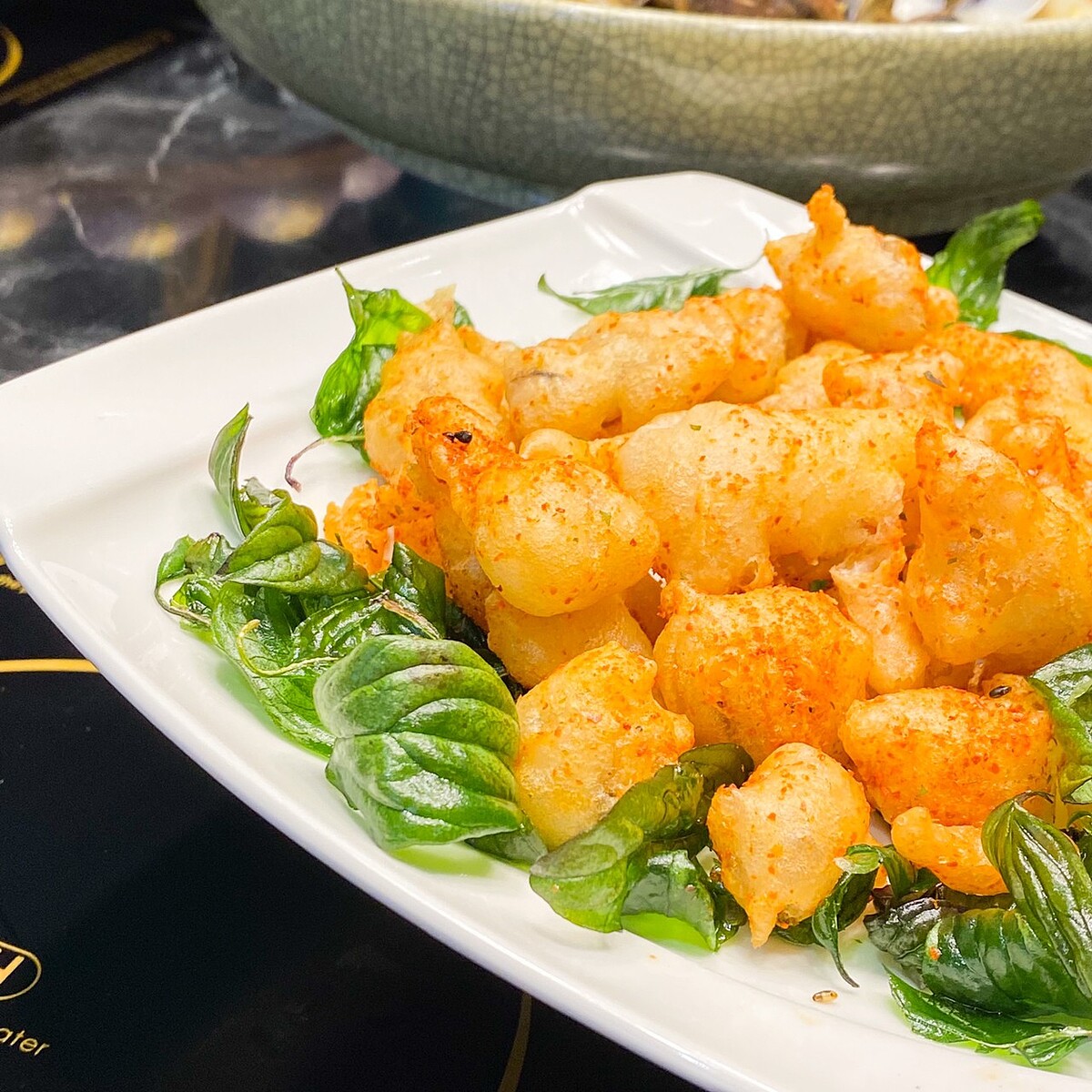 這道是小編的私心推薦!以台灣小吃蚵仔酥為發想,以蛤蜊為主要食材,主廚以秘製酥炸漿炸至金黃色,再撒上日本進口七味粉,搭配炸至酥脆的九層塔,金黃酥脆,香氣四溢的口感,每一口都是幸福滋味!