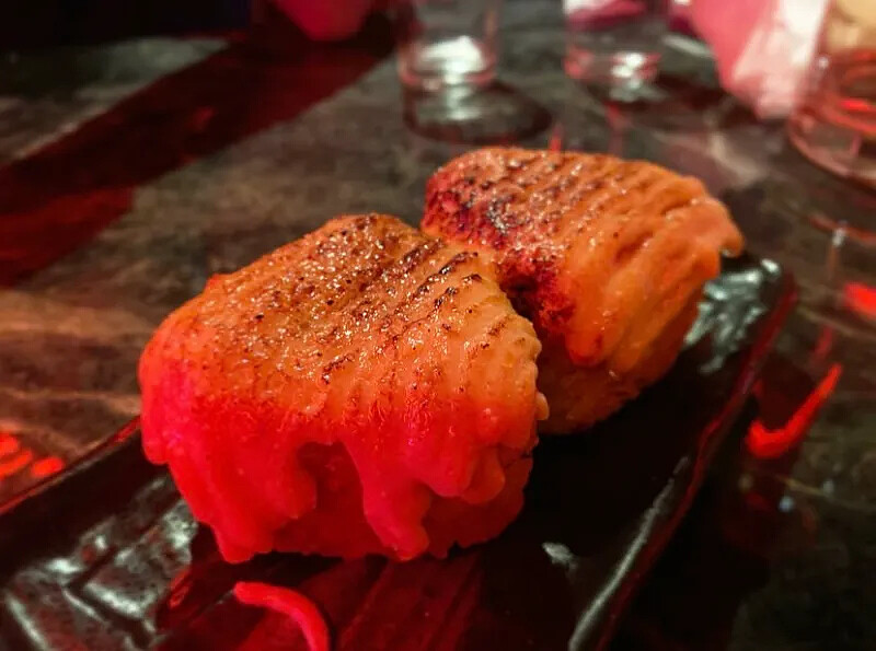 超級涮嘴!明太子烤飯糰上頭的炙燒香氣足夠,烤飯糰邊緣因為炙燒過後有焦脆感,而明太子也給了一個絕對不會讓人失望的厚度,身為明太子控的小編吃完心情大好。