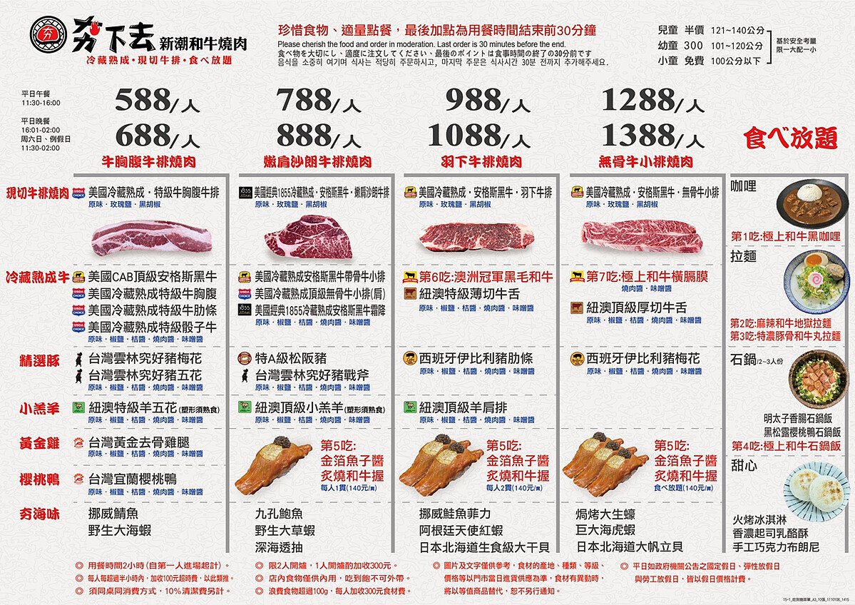 《夯下去.新潮和牛燒肉》菜單