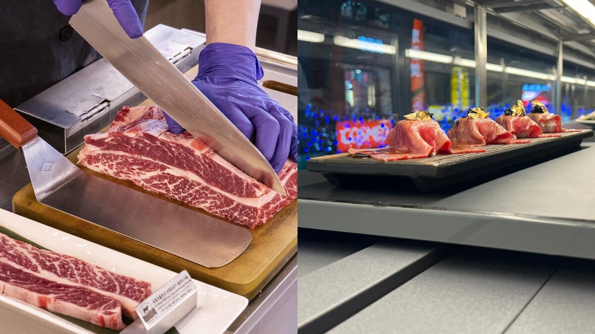 不僅如此,《夯下去.新潮和牛燒肉》店內更斥資千萬,引進智能高速磁力列車送餐,共有高、低雙軌道,增加上餐效率,以及料理職人推車至桌邊厚切牛排,讓各位享有高規等級的燒肉用餐體驗。