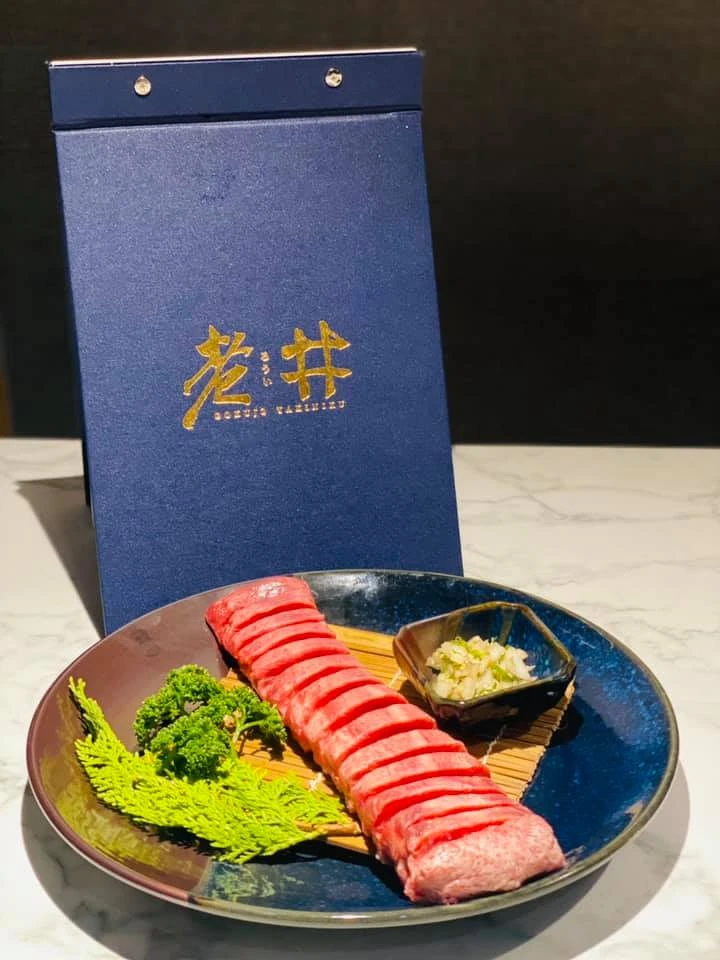 老井燒肉的牛舌不只有1cm、2cm的厚切牛舌,最誇張的是居然有30公分厚切牛舌!此外,這裡除了頂級和牛、安格斯美牛外,不吃牛的人除了雞、伊比利豬外,也可以選擇宜蘭櫻桃鴨!