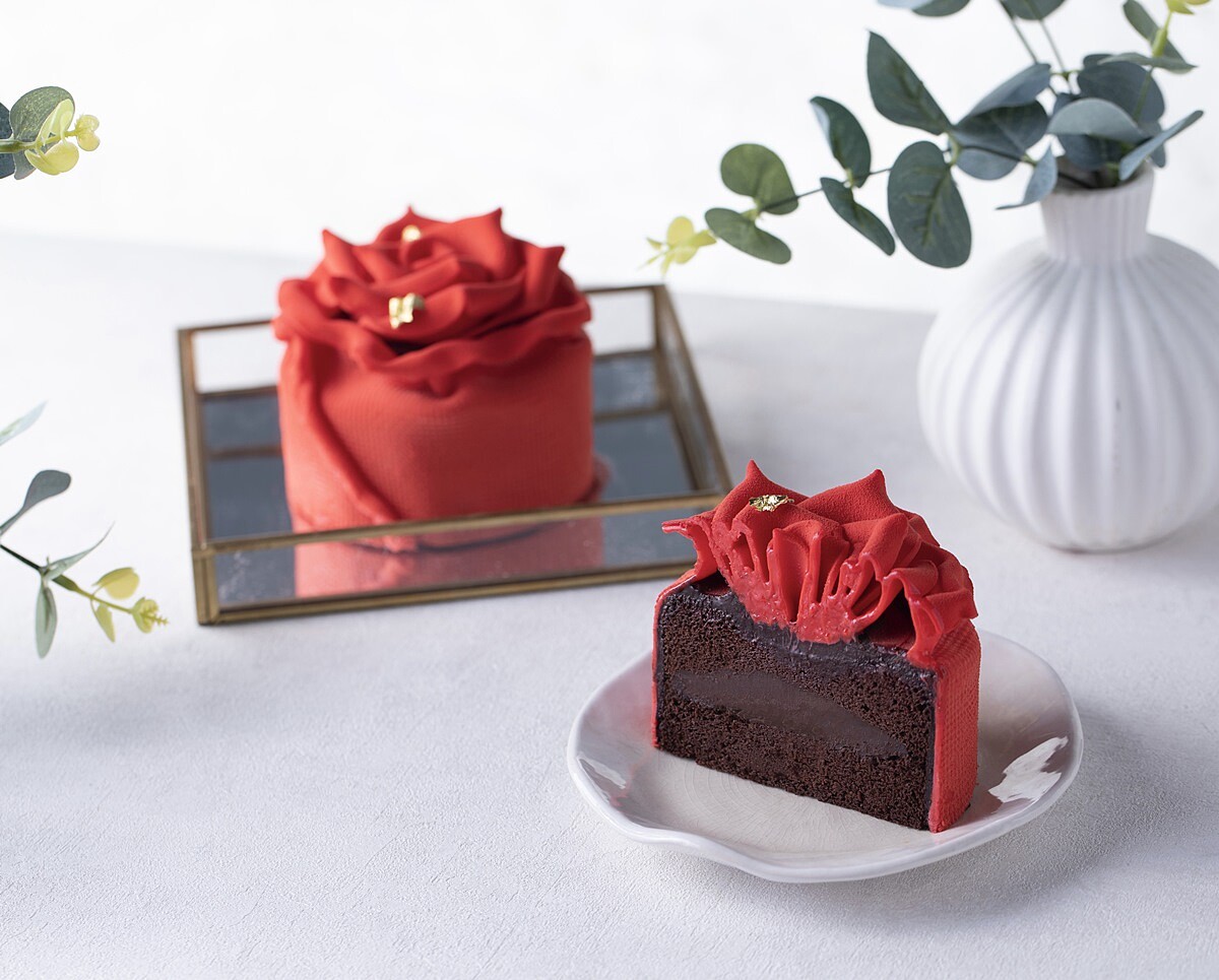 嚴選高濃度的比利時巧克力為原料,以招牌巧克力蛋糕為基底,再湯種巧克力蛋糕中夾入生巧克力內餡,再精心打造仿真玫瑰花造型,最後再以金箔點綴,甜而不膩的誘人風味,絕對是情人節必吃的巧克力蛋糕!