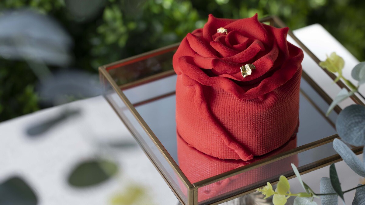 BAC情人節超夯的手工情人節蛋糕「玫你不可」回來了!情人節除了要準備玫瑰花束外,當然少不了巧克力甜點啦!BAC 2022浪漫再升級,使用了9片手工捏製的巧克力玫瑰花瓣,再加入金箔裝飾,更襯托出紅色玫瑰花的高貴感,仿真的玫瑰花造型美到讓人捨不得吃!