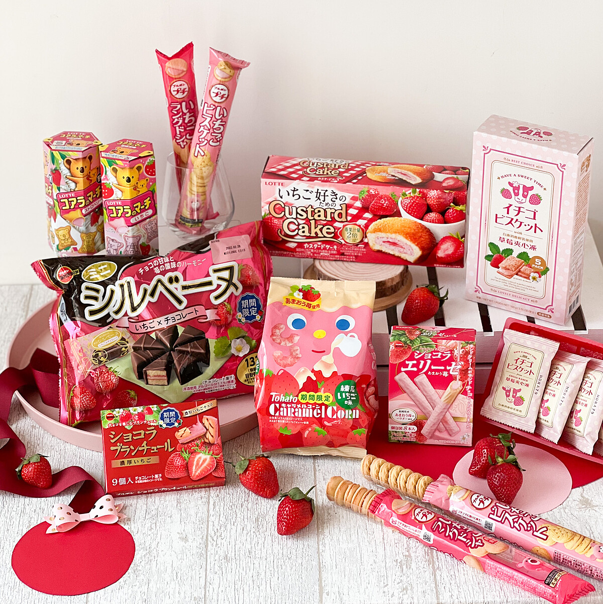 甜點控則不能錯過「草莓大波露」、「Milky sip牛奶吸管草莓口味」、「樂天草莓卡士達派」、「台東初鹿草莓拿鐵夾心派」、「韓國三光草莓板狀可可片」、「樂事靜岡草莓口味洋芋片」、「乖乖玉米脆條大湖草莓」、「LOTTE爽草莓冰淇淋」等,滿滿的草莓滋味等你來嚐。