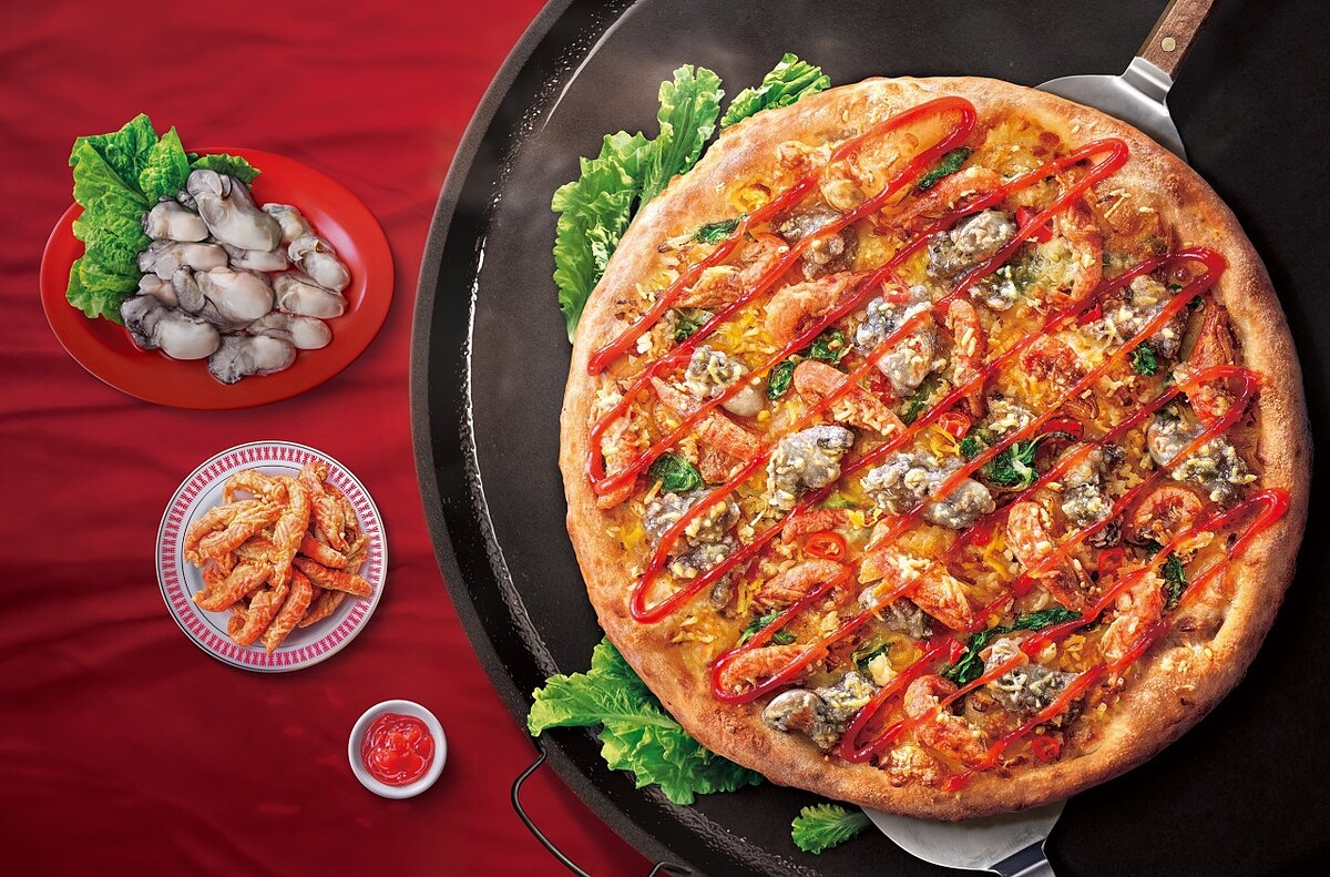 必勝客「蝦猴酥蚵仔比薩煎」於即日起限時販售,數量有限售完為止,單點一個大比薩優惠價389元,也能以原價740元搭配外帶買大送大或外送買大送小優惠。