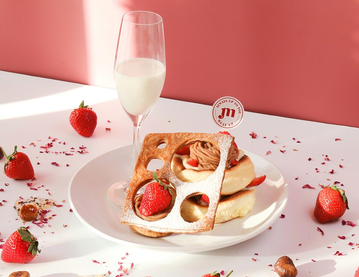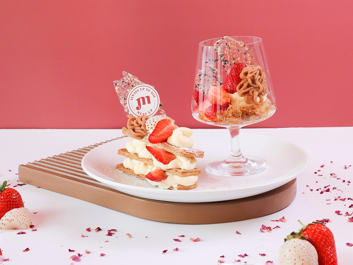 Meat Up第二波草莓季特別加入風味甘甜的栗子蒙布朗,搭配草莓微酸微甜的口感,讓舒芙蕾整體風味層次更加豐富!