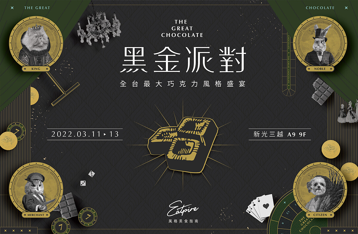 由Eatpire風格美食指南主辦,全台最大巧克力盛會「黑金派對」將要美味回歸,第二屆以「可可賽局」為主題,除了能品嚐各式巧克力,還多了許多會場互動遊戲,身為巧克力狂粉可不能錯過!