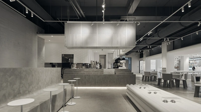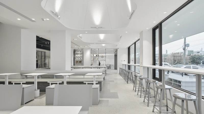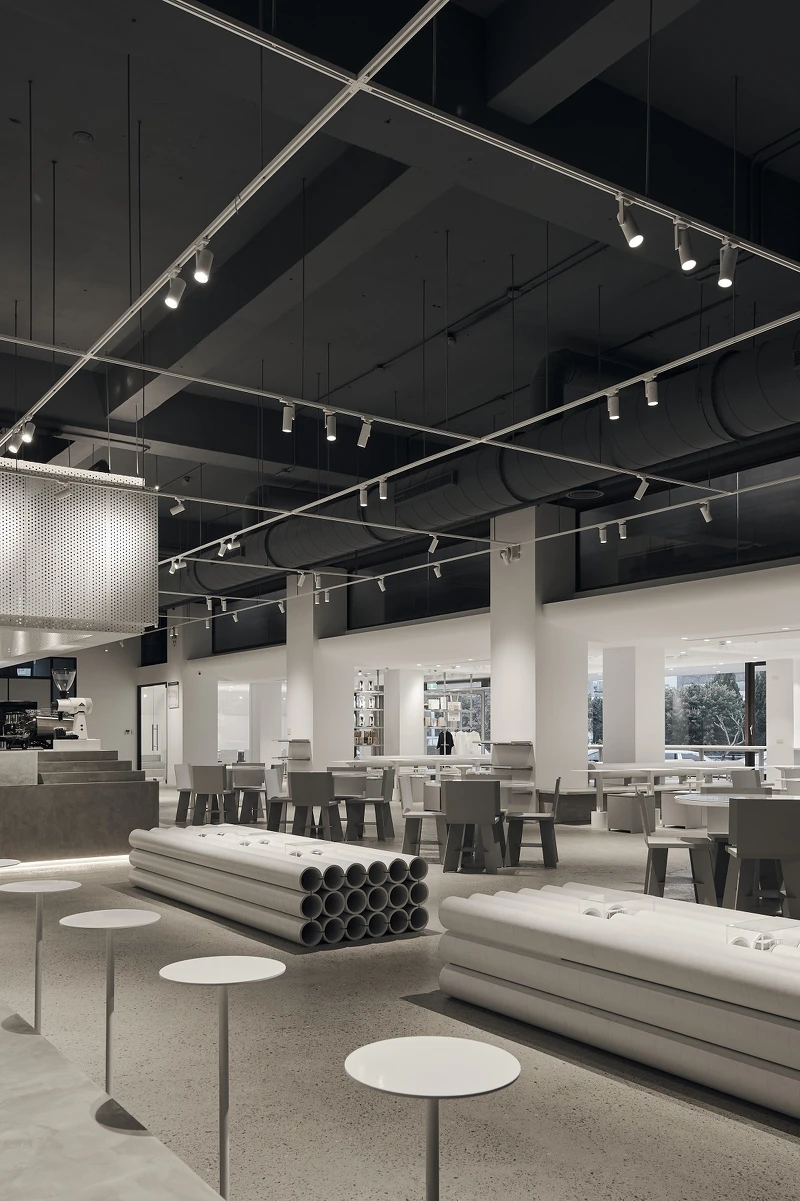 位在南桃園平鎮工業區,室內設計師Elson將《CAFE!N》桃園總廠店使用不同穿透性材質,讓整體空間更加有活躍感,創造遠近聚散的視覺層次,加上純白的裝潢,在工業風中更是增添了簡約舒適的氣氛。
