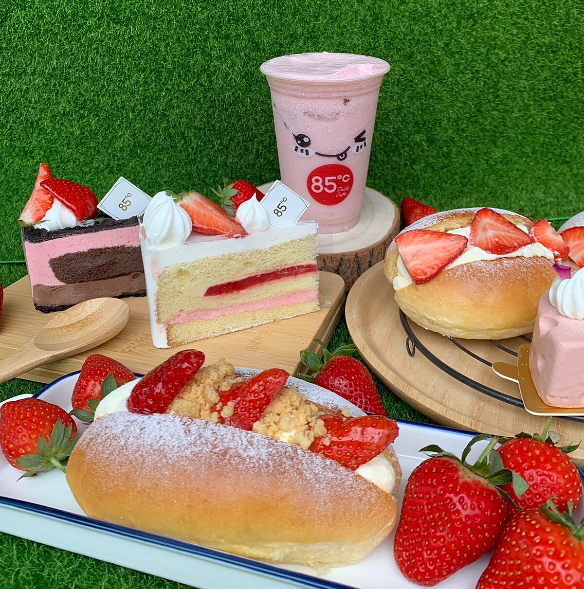 85℃在草莓季推出一系列的超誘人的草莓甜品及飲品,為了讓草莓控們吃好吃滿,推出了連續14天的超殺優惠,從草莓牛奶第二杯半價,到草莓蛋糕、草莓生乳包等第二件8折等,數量有限,售完為止,草莓控們把握時間吃一波!